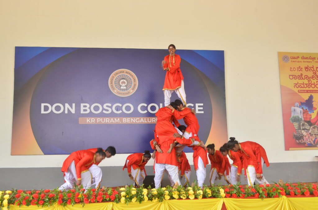 Don Bosco College observed the Kannada Rajyotsava Celebrations from 1 to 14 November 2025, focusing on the linguistic and cultural heritage of Karnataka. The programme opened on 1 November with a flag hoisting ceremony led by the Principal.