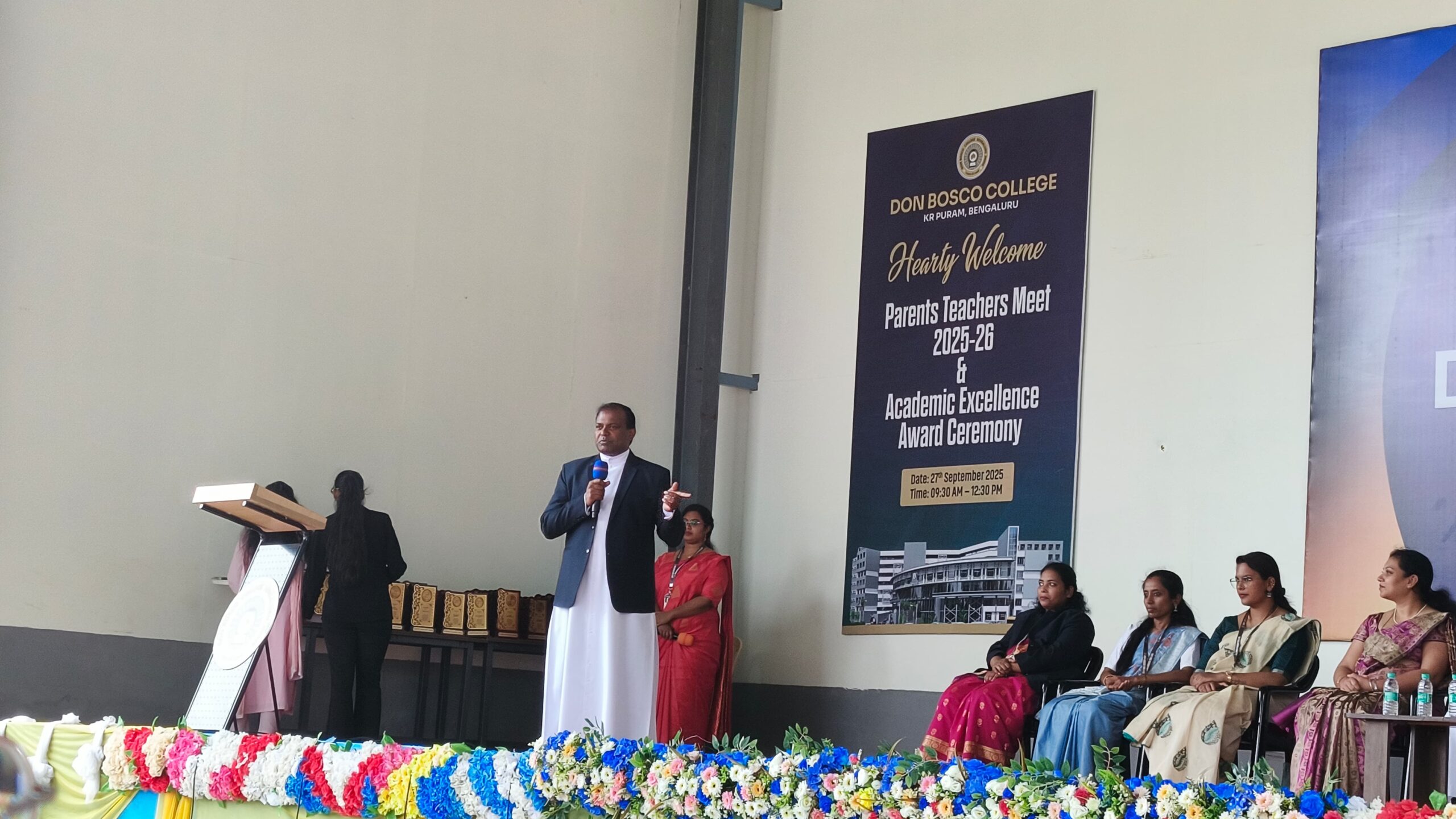 Don Bosco College organized a Parent-Teacher Meeting and Academic Excellence Award Ceremony on September 27, 2025. Parents interacted with teachers and faculty members regarding students’ academic performance. Progress cards of the internal exams, along with attendance records, were distributed.